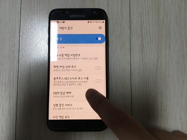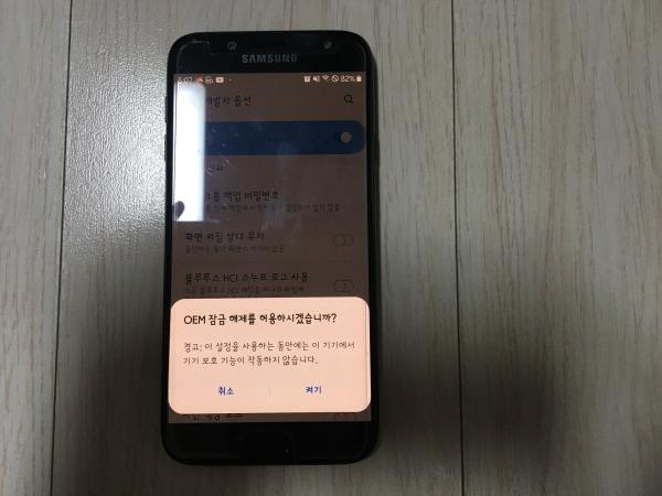 개발자 옵션에 진입하게 되면 OEM 잠금 해제 탭이 있습니다. OEM 잠금 해제 탭을 활성화 시켜주세요. 뭐라뭐라 경고 메시지가 출력되지만 걱정하지 말고 패턴 또는 비밀번호를 통해 활성화 시켜주시면 됩니다.