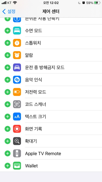 대부분 설정한 적이 없기 때문에 제어센터의 반투명 위젯에 보이지 않는 경우가 많습니다.