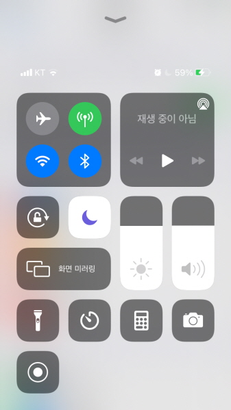 제어 센터에 들어오면 생각보다 많은 기능들이 활성화 또는 비활성화 되어 있는 걸 확인할 수 있는데요. 아이폰 화면 녹화 기능을 활성화하기 위해서 아래로 내려가주세요.