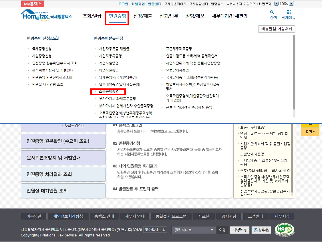 소득금액증명원 인터넷으로 쉽게 발급받는 방법 (홈택스 온라인)
