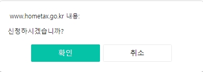 그러면 이렇게 다시 한 번 신청하겠냐고 물어보는 팝업창이 뜨게되고 확인을 눌러주면 소득금액증명원 발급 신청은 완료입니다!