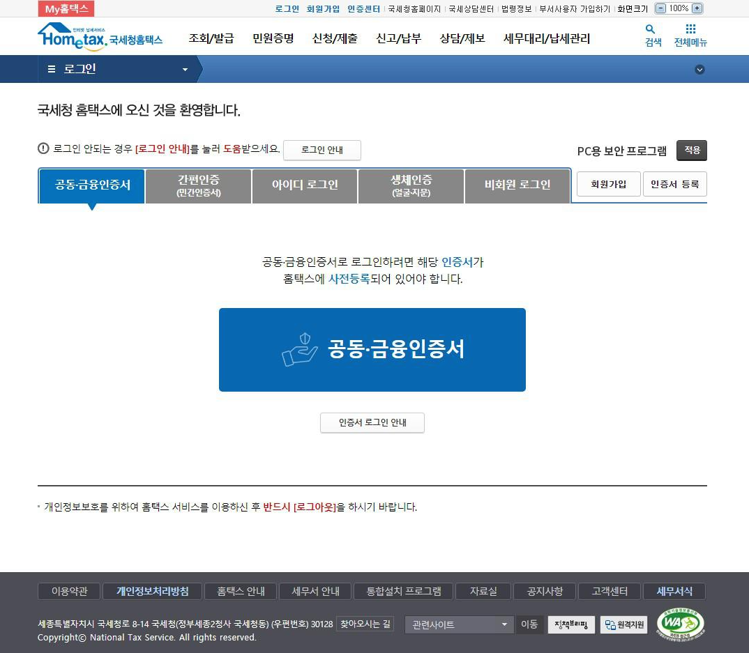 물론 로그인을 해주셔야 소득금액증명원 인터넷 발급이 가능합니다. 확인을 눌러주시고 공인인증서를 사용하여 로그인을 진행해주세요.