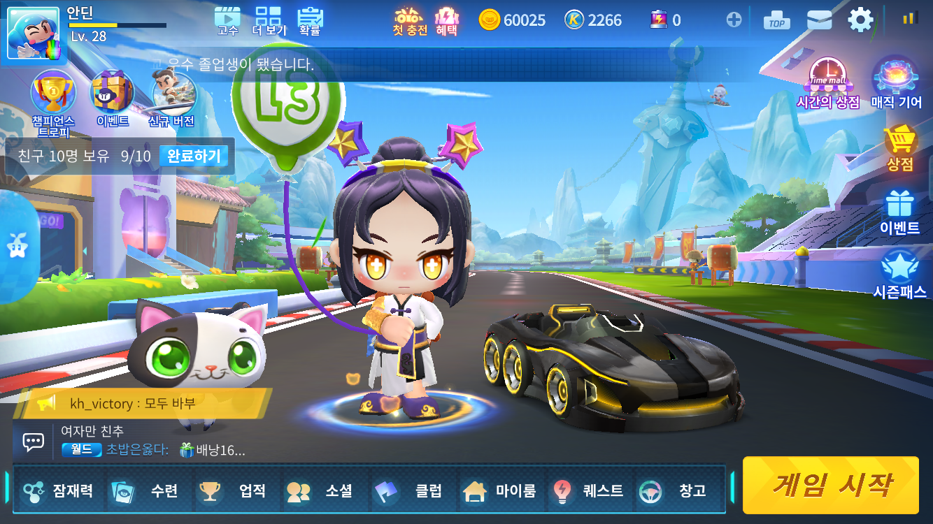카트 레벨업에 쓰이는 에너지 크리스탈도 250개나 주니 온 김에 친구 마이룸 2개를 방문해보는 것도 추천 드립니다!