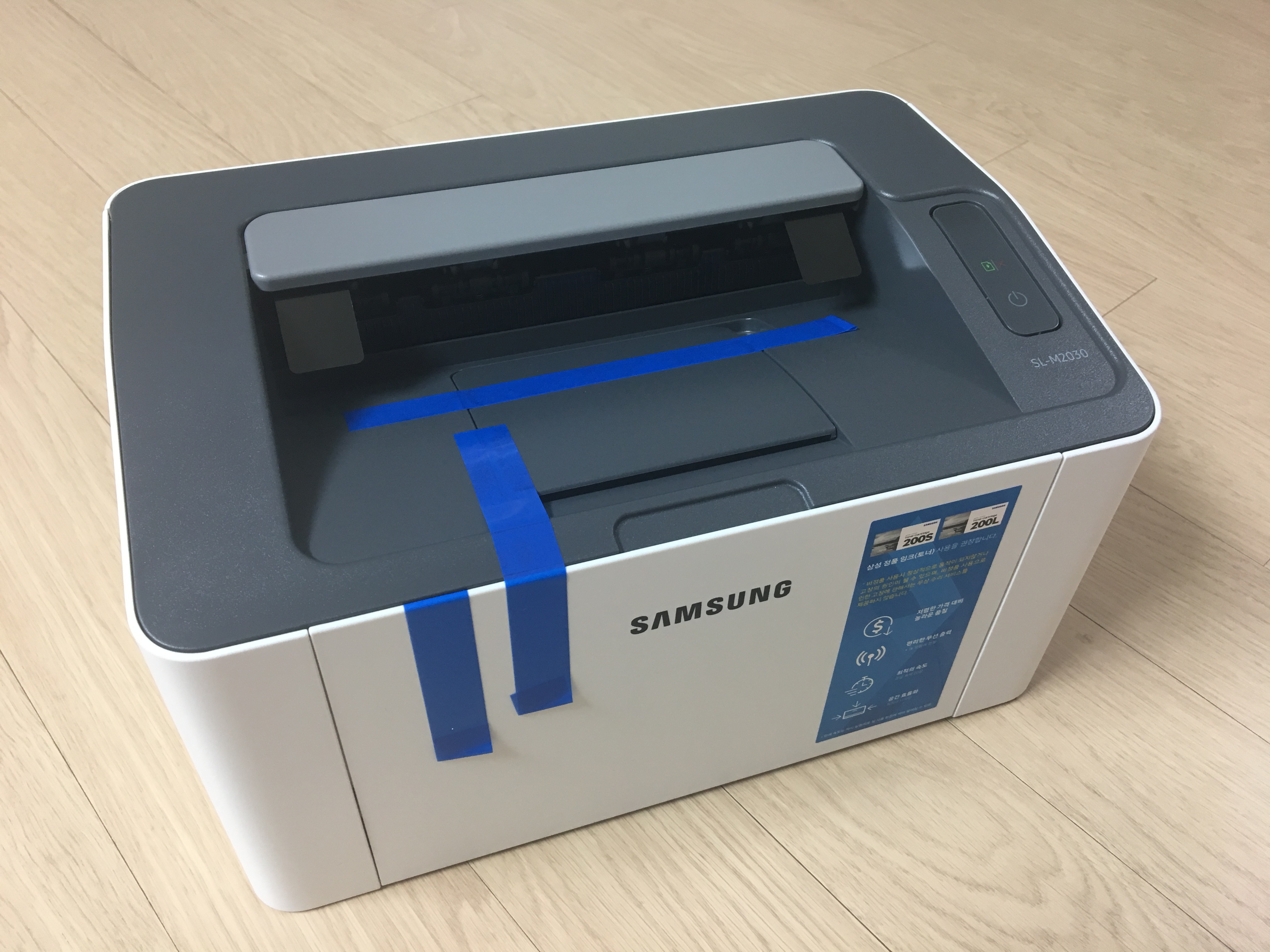 전자기계가 그 흔한 뾱뾱이 포장 없이 도착해서 걱정이 되긴 했지만 박스 안쪽에 스티로폼 가드로 움직일 수 없게 포장이 되어서 삼성 SL-M2030 레이저 프린트에는 상처하나 없었습니다. 와우~!소리가 나올정도로 깔끔했네요.