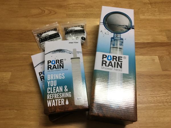 다행히도 이사한 집이 이제 3년정도 된 집이라 녹물 걱정은 없었는데, 아이한테 깨끗한 물로 양치시키고 샤워시키자는 마음에 구입하게 된 "퓨어레인 필터 샤워기 기획세트"예요.